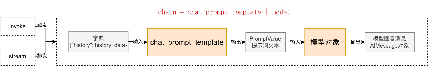 invoke|stream 初始输入 -> 提示词模板 -> 模型 -> 数据处理 -> 提示词模板 -> 模型 -> 解析器 > 结果