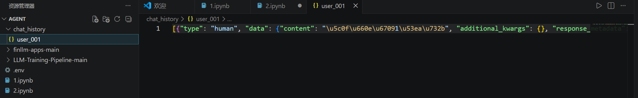 使用InMemoryChatMessageHistory仅可以在内存中临时存储会话记忆,一旦程序退出,则记忆丢失。我们可以自行实现一个基于Json格式和本地文件的会话数据保存。