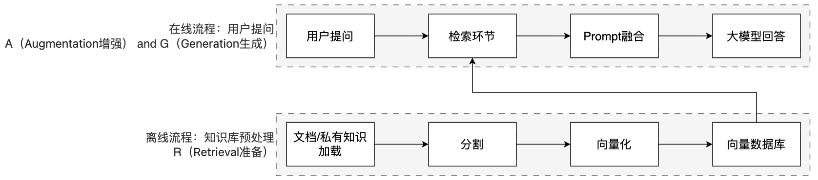 简单来讲,RAG工作分为两条线:离线准备线和在线服务线。