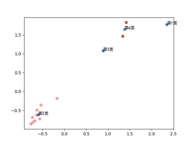 plt.annotate(f'第{i+1}类',(Muk[i,0],Muk[i,1]),fontproperties='SimHei')