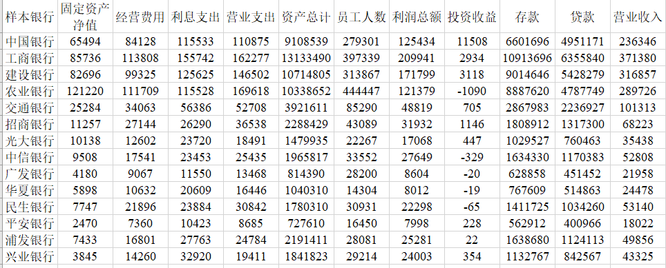 已知2010年14家银行信息,对其进行K-means聚类。