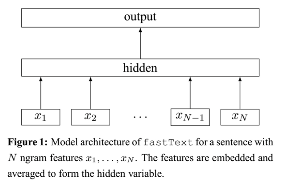 于是fastText的核心思想就是:将整篇文档的词及n-gram向量叠加平均得到文档向量,然后使用文档向量做softmax多分类。这中间涉及到两个技巧:字符级n-gram特征的引入以及分层Softmax分类。